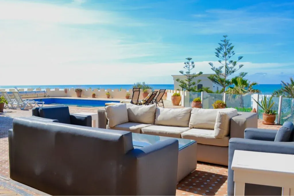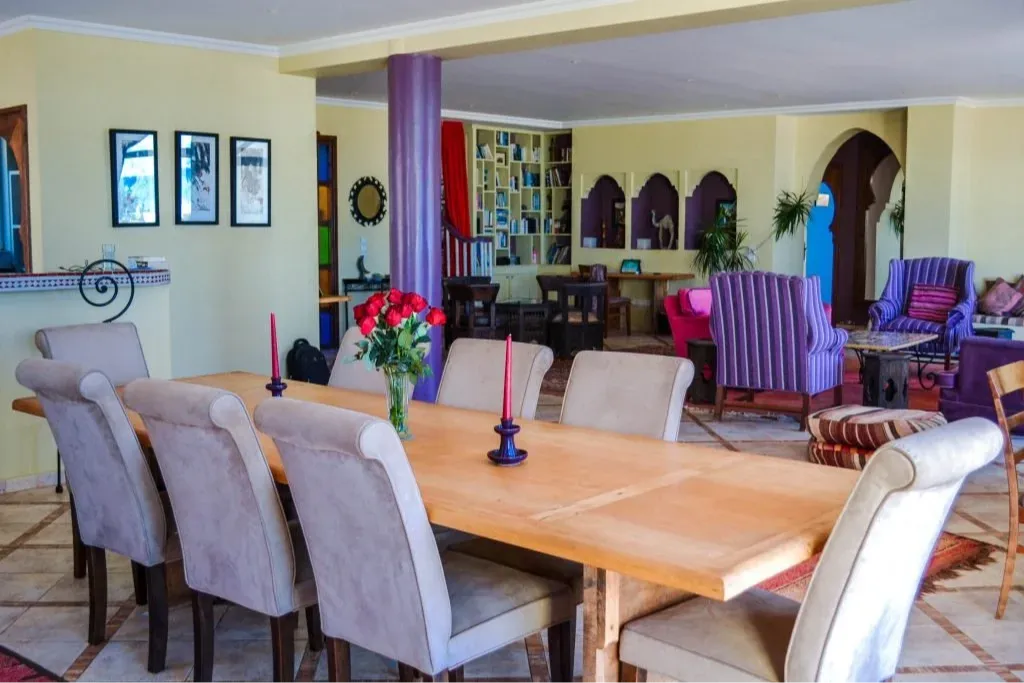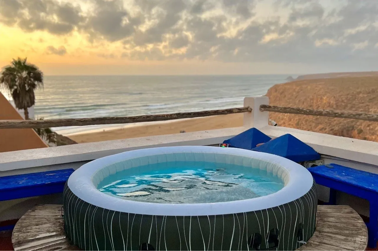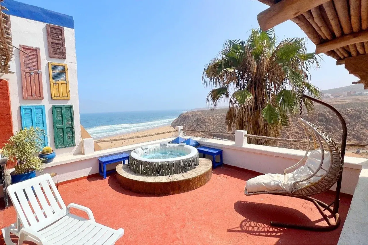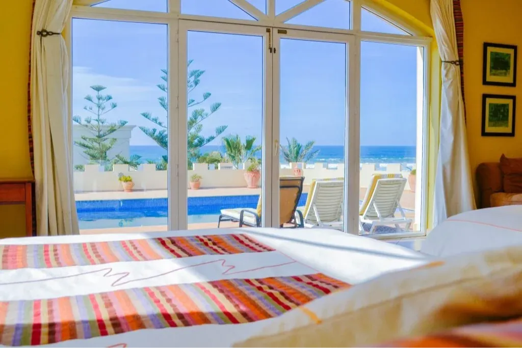 Stay in stunning oceanfront accommodations, blending Moroccan elegance with contemporary comfort. Think panoramic terraces, ocean views, and peaceful corners to paint, rest, or connect. The spaces are designed to give us room for both creation and relaxation — with breathtaking views of the sea.